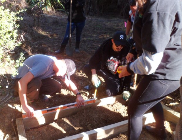 The group then studied the area to determine the best way to approach the project. They measured the area and calculated the number of steps and the amount of timber required.