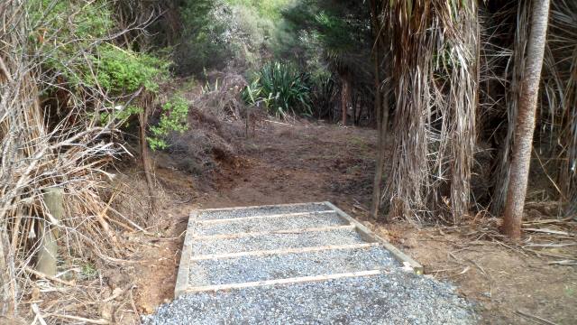 The buckets were loaded onto the ute and driven to the site where they were unloaded and dumped on the steps. The gravel was raked smooth to finish off the job.