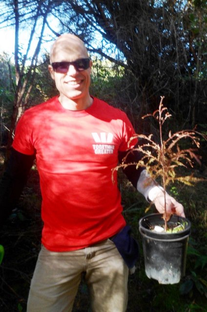 The group broke into teams of two and headed out to find good planting sites. We had been concerned about the weather because the previous two days we’d had gale force winds and rain, but today was brilliantly sunny and a perfect winter day that felt like spring.