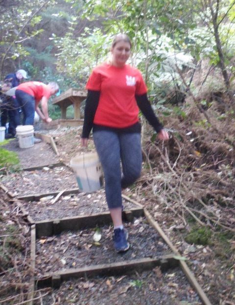 The team wanted to completely finish off the section they’d worked on so we finished it off with a layer of gravel to make the track suitable for all year and all weather use. We went down to the car park and loaded up buckets with gravel.