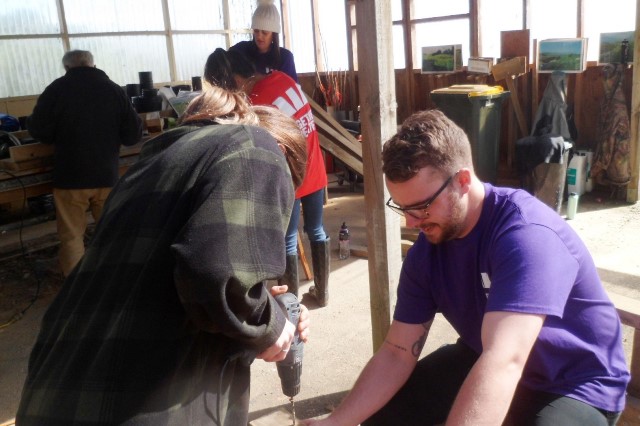 Two teams stayed in the field with Thomas to work on some track maintenance challenges and the other went down to the nursery with Alan to work on benches.