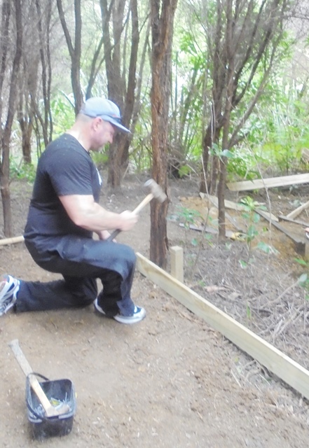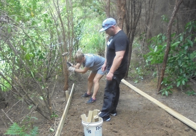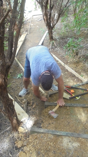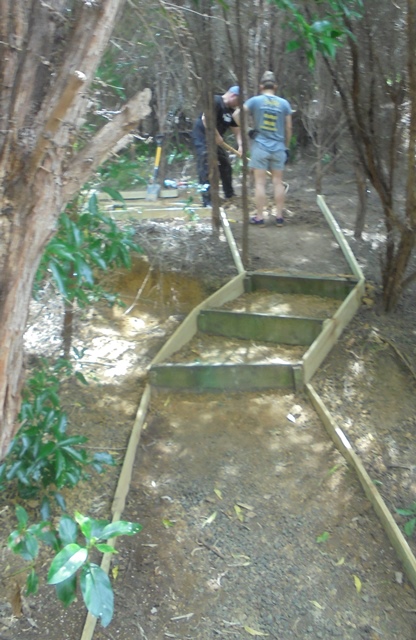 The job involved digging out a channel on the sides of the steps and nailing boards in place.