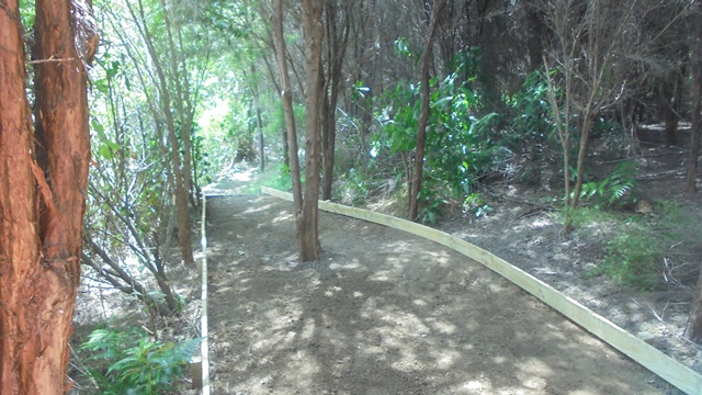 The team encountered an interesting challenge. The track was routed through existing bush and there was a point where the trees were so close the track would have been extremely narrow. Instead of cutting down a tree, the team decided to widen the track and incorporate a small tree within it. The wide area will now allow space to put a bench and provide another opportunity for visitors to relax and enjoy their time in the bush.