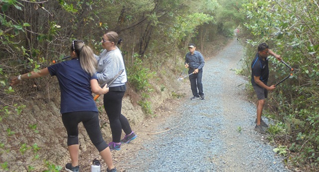 The plan for the day was to trim vegetation that had grown out over the roads and walking tracks. Because we haven’t been able to have volunteers at CUE Haven for several weeks, there was a lot of trimming to do!