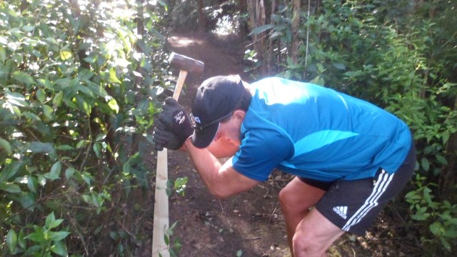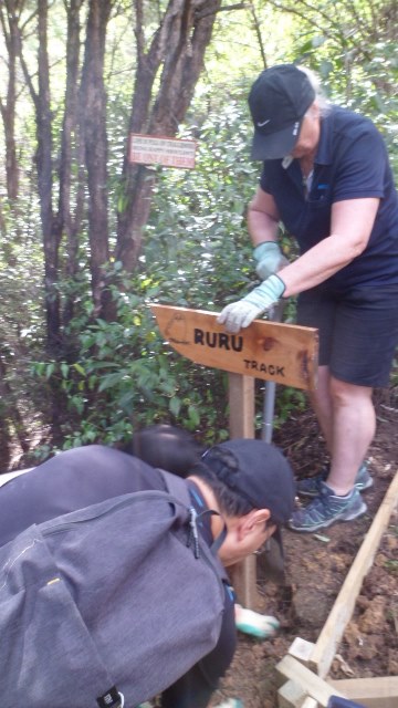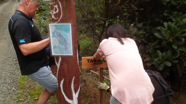 Once they finished the trimming, they worked on installing some signs on the tracks to assist visitors in finding their way around.