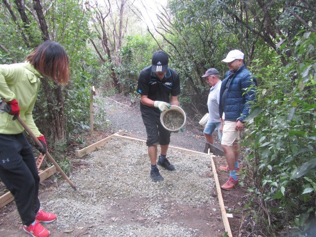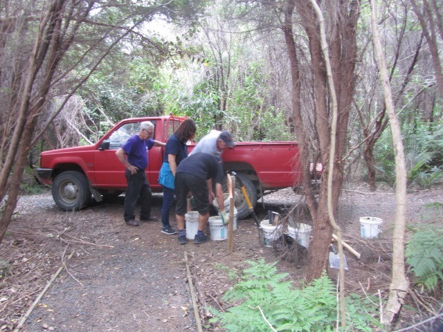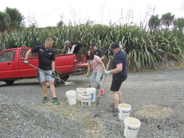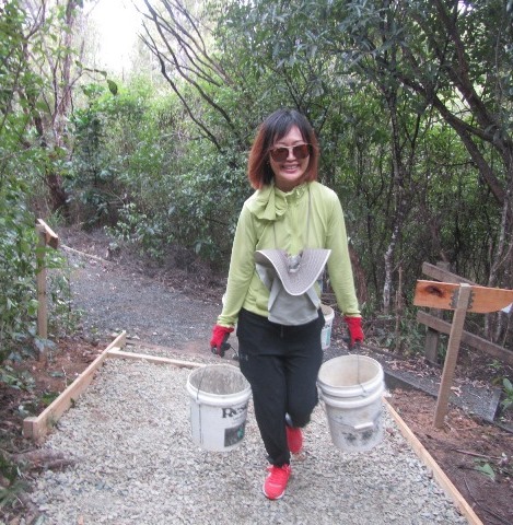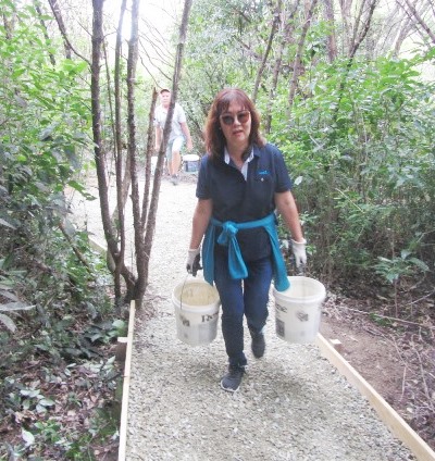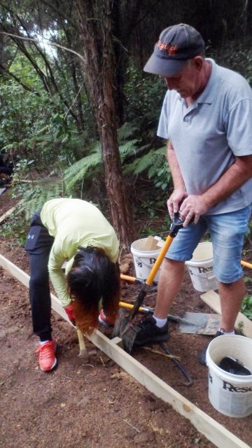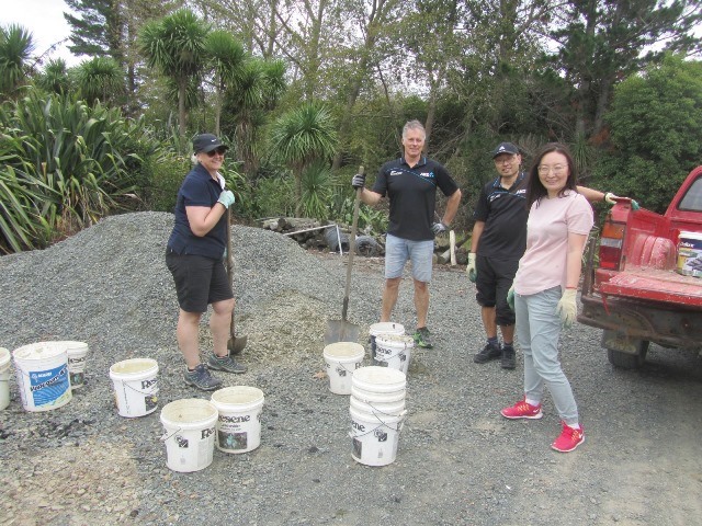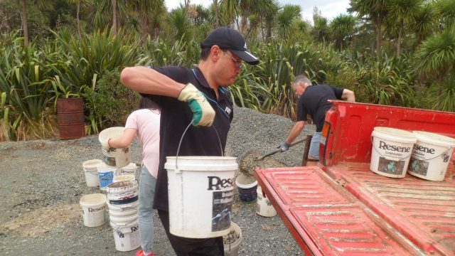 There was still some time left before lunch and the teams decided that they wanted to put down a layer of gravel on at least part of the track section they’d completed. A group filled up buckets and loaded them onto the ute.