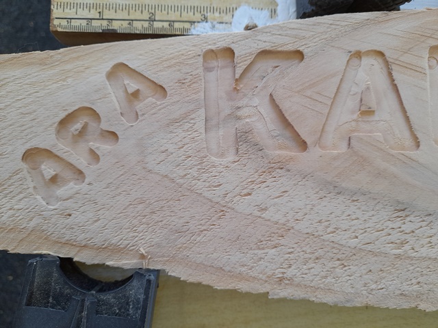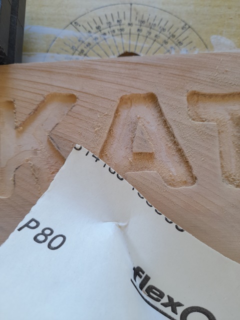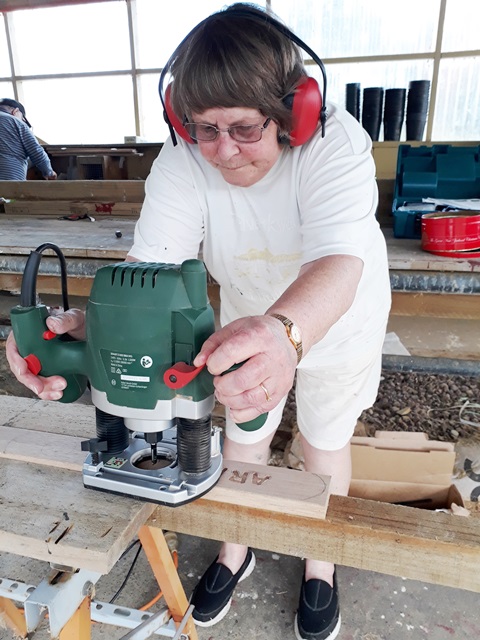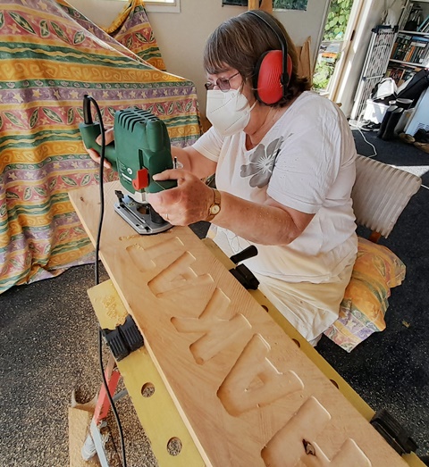 Rosemarie then cut out the lettering with her router.