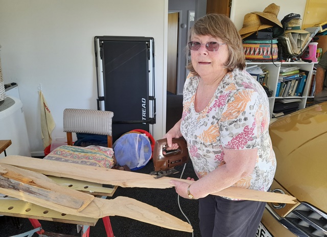 Turning her garage into her workshop, Rosemarie set to work cutting the timber down to size.