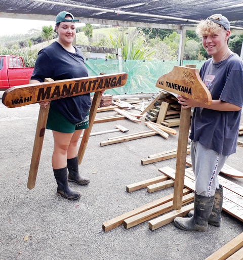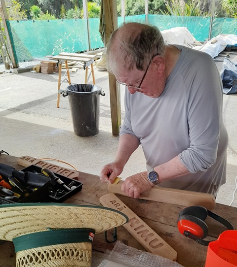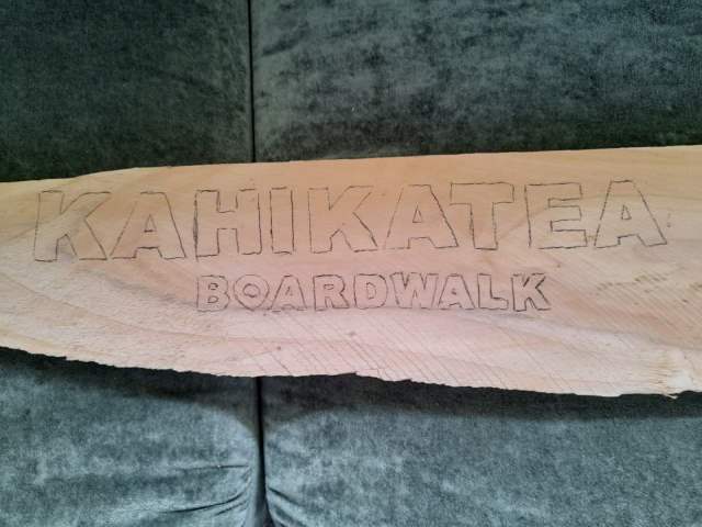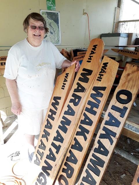 With so many signs to make, Rosemarie and Neil had to source timber from another timber mill too, Opunake Mill. These timber boards were not smooth and their friend Peter came to re rescue and planed the boards in his home workshop and cut them to size. Thanks Peter!!