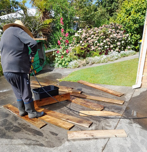 Neil went to work with his water blaster to clean up all the boards.