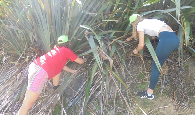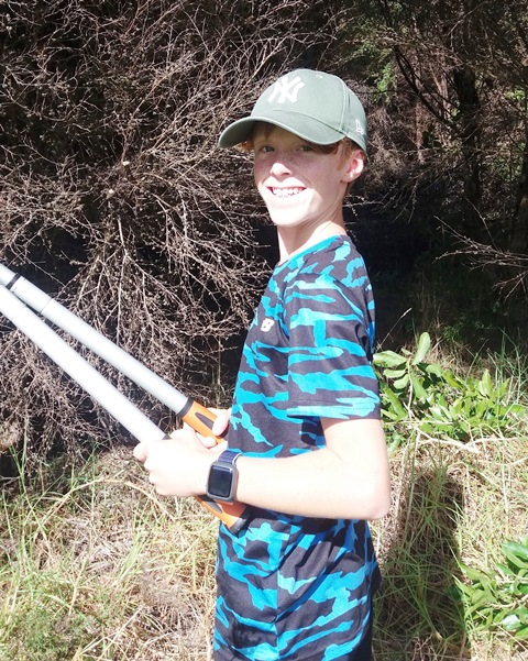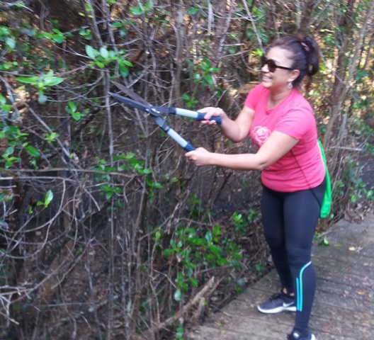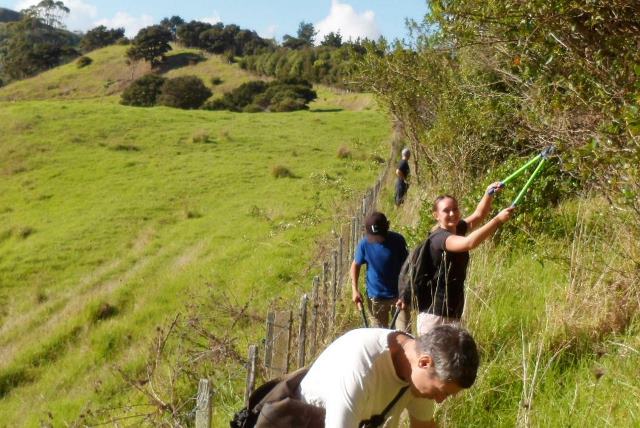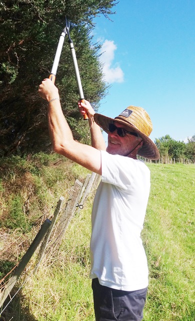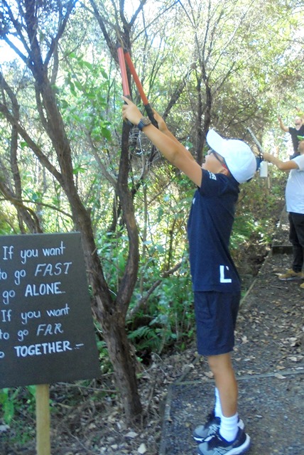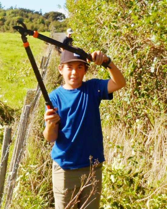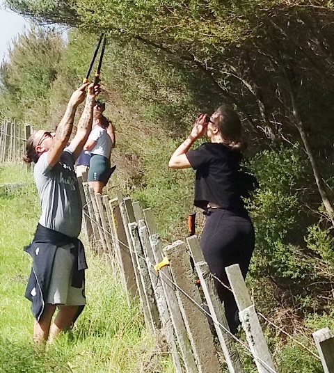 The other two teams took on the challenge of trimming vegetation along the boundary fence. We like to keep the bush about a metre away from the fence, both to enable us to do maintenance and also to discourage the neighbour’s cows from thinking there is something better than grass to eat over the fence at CUE Haven. It was challenging work but the team managed to clear the entire northern boundary fence.