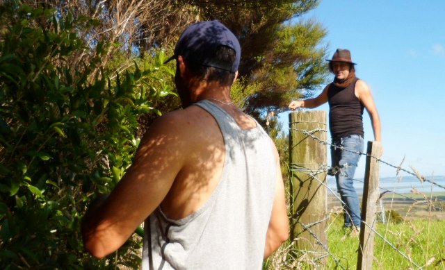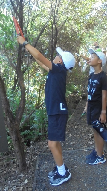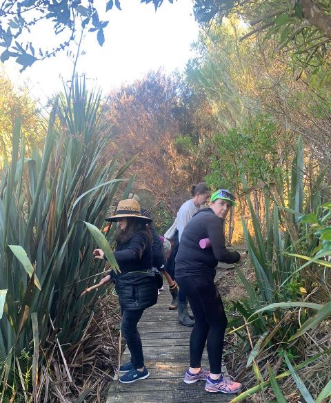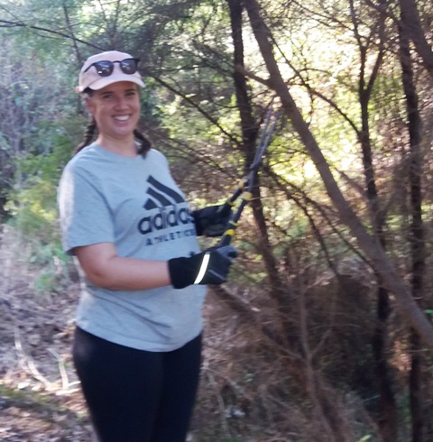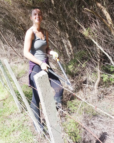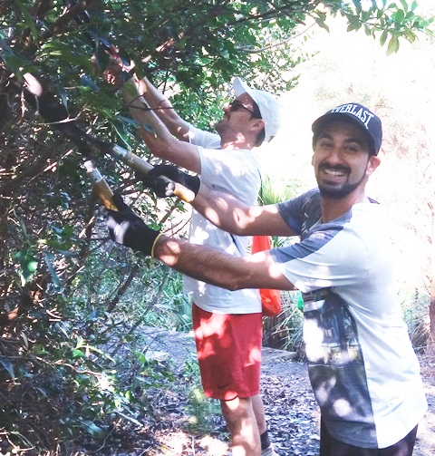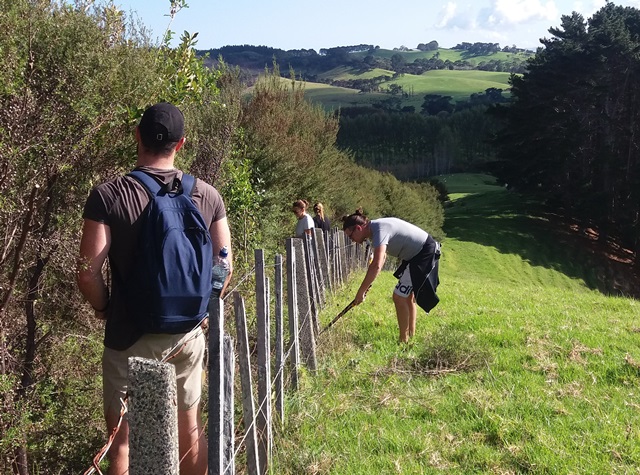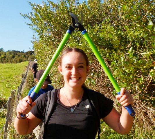 The plan for the day was to do some autumn maintenance—primarily cutting back vegetation that has grown over the walking tracks and fences over the summer. Because of the size of the group, we broke into three teams. One team went with Alba to work on the wetlands boardwalk. Lauren took a team to tackle the main walking track and Hernan and Thomas’s teams trimmed vegetation along the boundary fence.