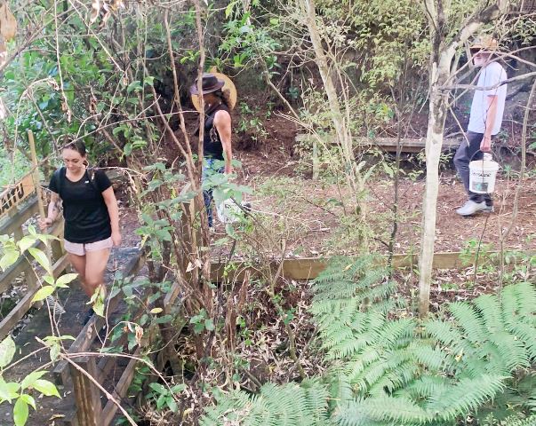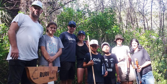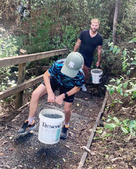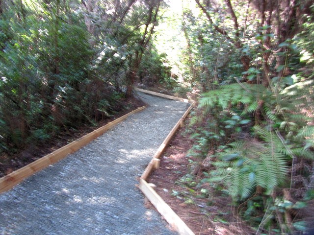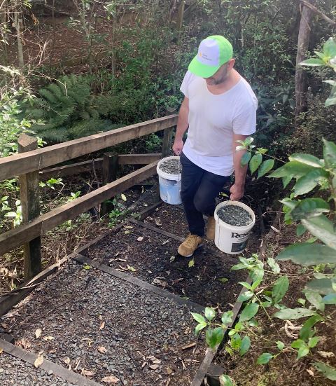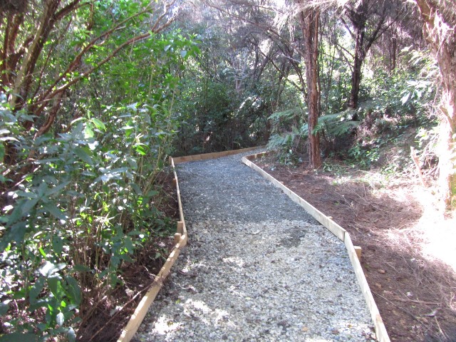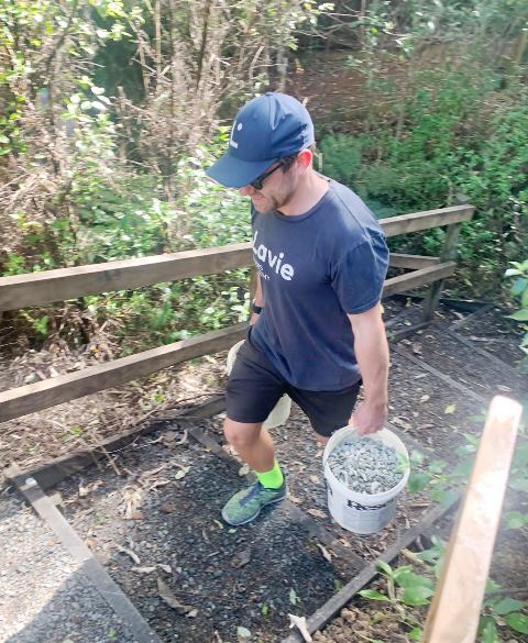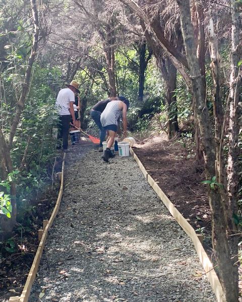 Once the trimming was finished, there was still some time before lunch and we requested the enthusiastic group to help us put down some gravel on a newly improved section of walking track.