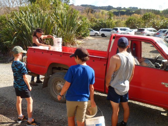We went down to the nursery and gathered up empty buckets and loaded them on the ute.