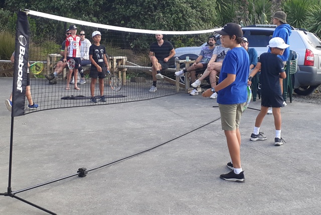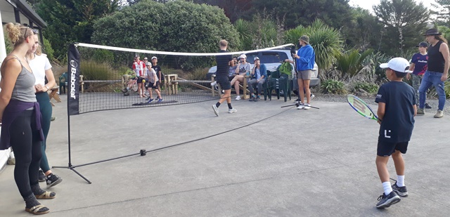 Hernan is the Fitness Trainer for the Lavie Tennis Academy and joining Hernan for the day were tennis coaches Chris, Josh and Sebastian and several students. You would think that the hard working group had burned off enough energy in the field, but after lunch they set up an impromptu tennis court and had some practice sessions.
