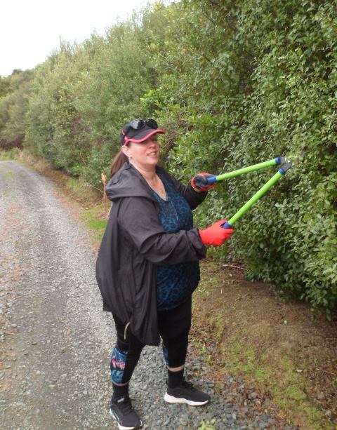 The enthusiastic and hardworking team exceeded our expectations and by lunchtime managed to clear the overhanging vegetation along the entire length of Huarahi Kowhai—just over a kilometer of trimming!