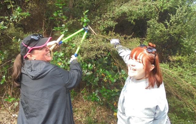 Felicity, Izzy and Michelle’s took on the task to trim vegetation that had grown over the main road.