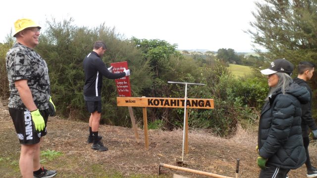 The last sign was installed midway up Huarahi Kowhai by the entrance to Arā Taraire.