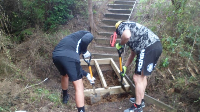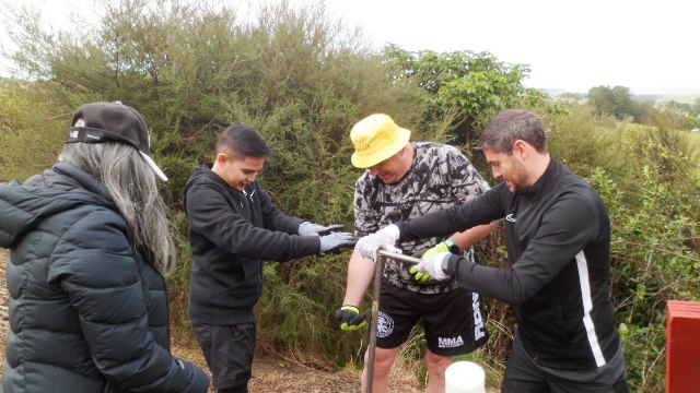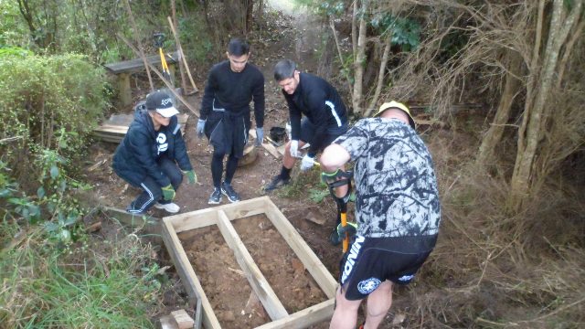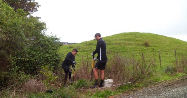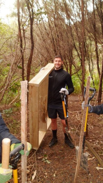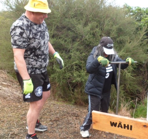 The next sign, which we installed in Wāhi Māramatanga, posed a challenge because it was larger than the others and had two posts—which meant digging two holes.
