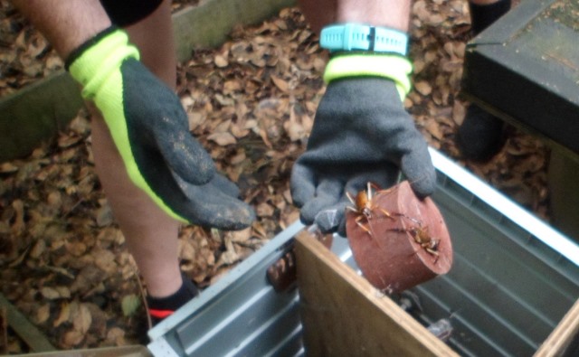 The team took the opportunity to clean up the chess and checker pieces and disturbed some wetas.