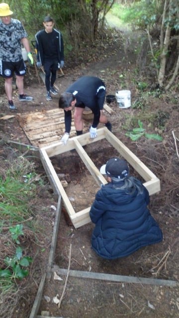 The soil around where the new bridge would go was dug out and the frame was test fitted.