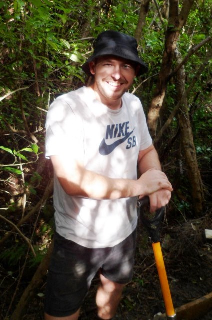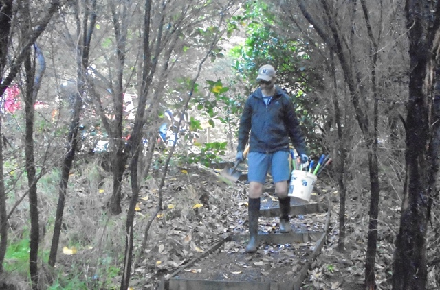 Thomas had earlier taken the gear up to the track site and because we were going to be working on a section of the track deep in the bush, the first task was to carry the tools and equipment down to the work site.