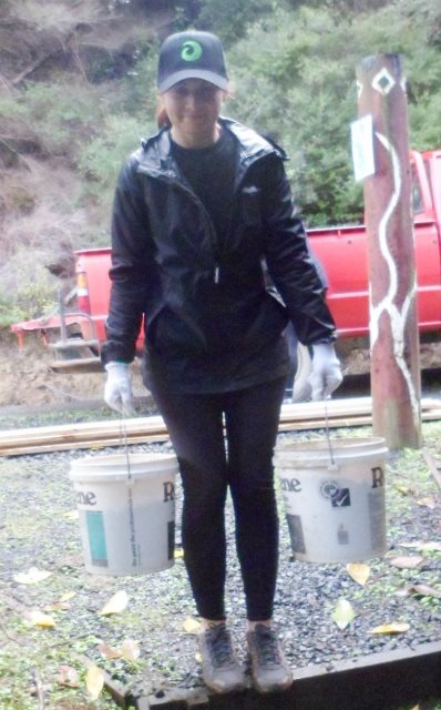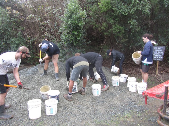 We loaded up buckets of gravel.