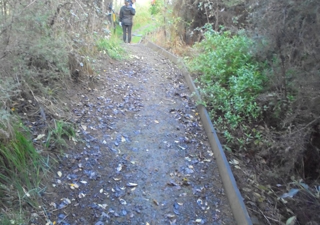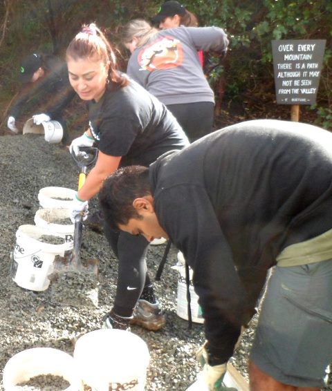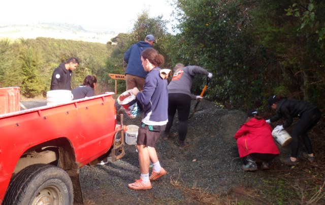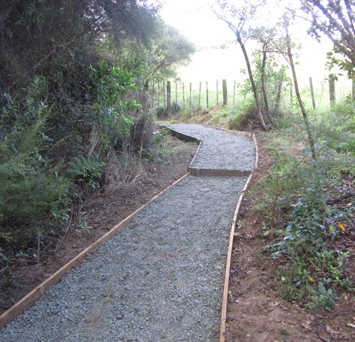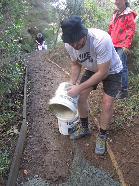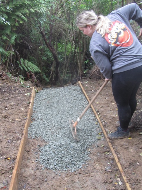 After a couple of hours labouring the teams completed a long section of track. The next task was to put down a layer of gravel to make the track easy to use in all weather.