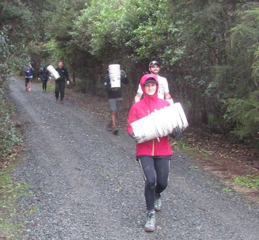 The empty buckets were taken back up and refilled.