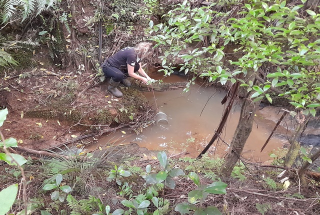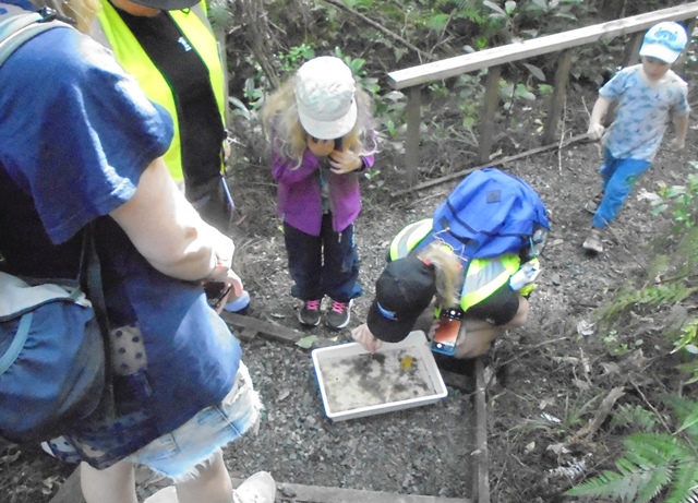 At the first two net sites no fish had been caught but Stephanie took some samples of water so that the students could look for macroinvertebrates living in the stream.