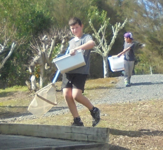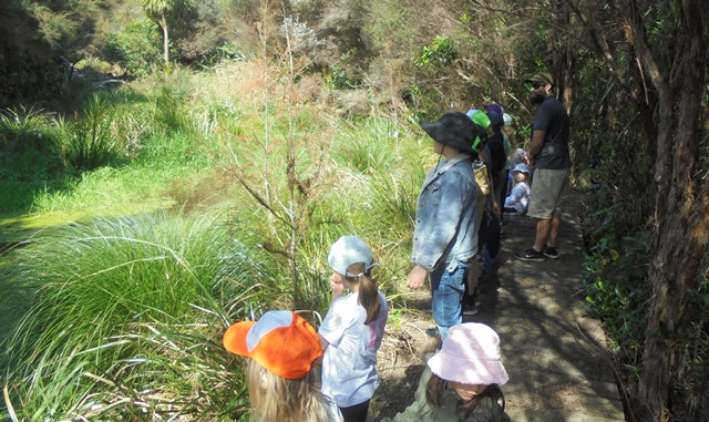 The plan for the day was for the students to walk through the CUE Haven bush to learn about native plants and restoration and along the way visit the net sites and also look for fish and macroinvertebrates in the stream.