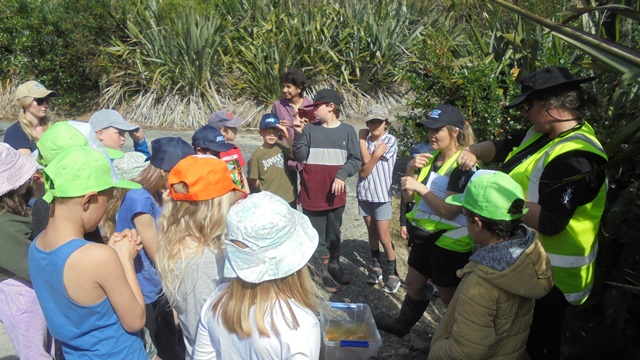 The students have been working with educator Stephanie McLeod of Whitebait Connection, an environmental education group focused on the health of New Zealand’s streams and waterways and Stephanie was joined by her colleague and educator Sarah Dimitrijevic.
