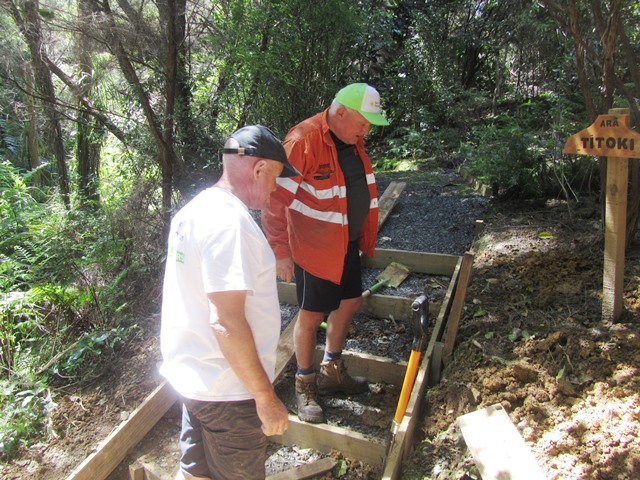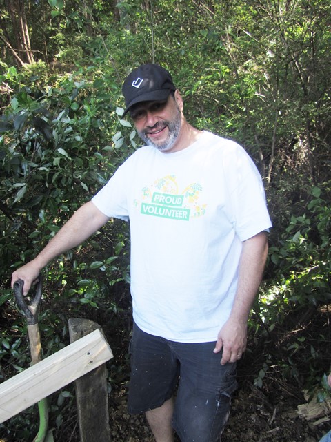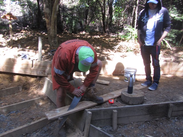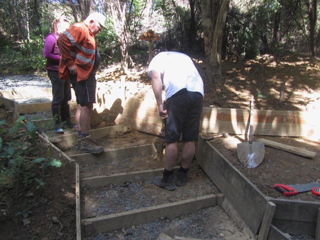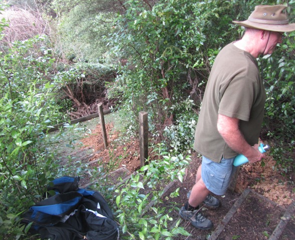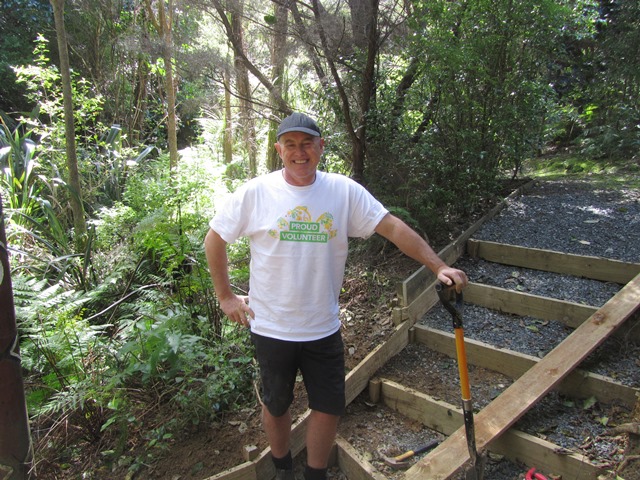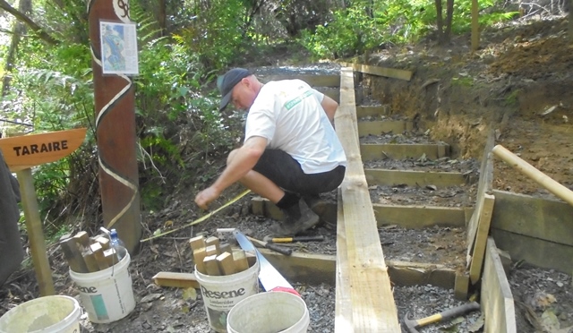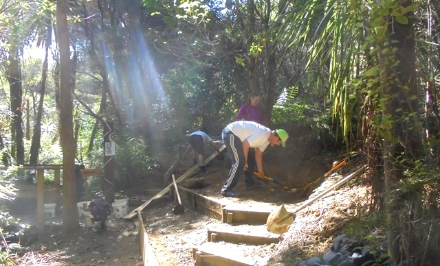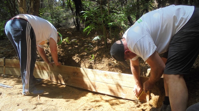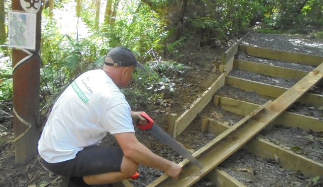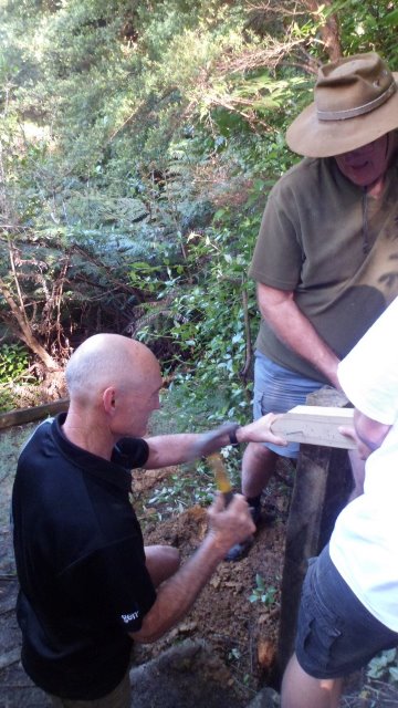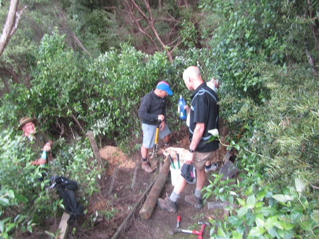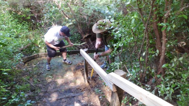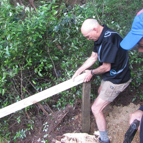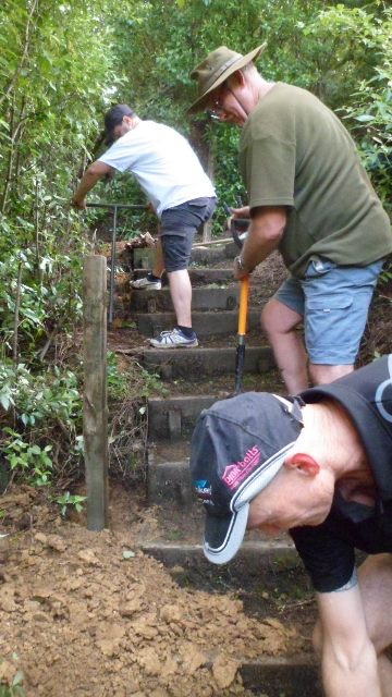 Haider, Stephane, Phil, Tim worked on installing a railing on some steep steps on an older section of the walking track.