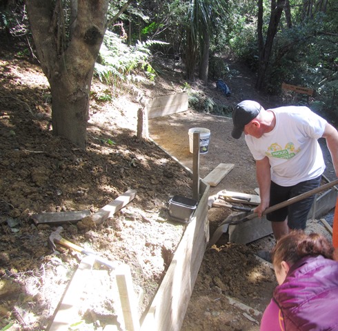 Once the area had been dug out it was time to bring down the timber and install the retaining boards.