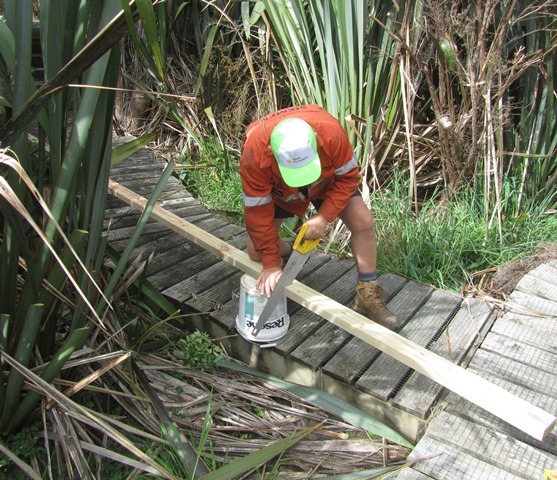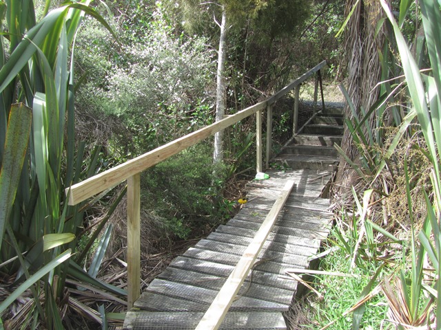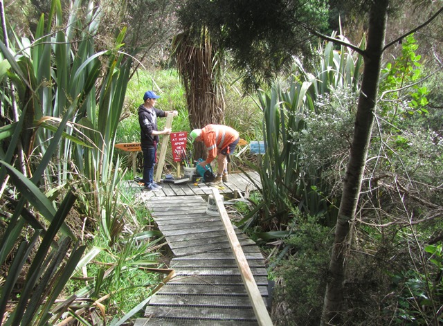 We also requested them to look at solutions to a section of the Kahikatea boardwalk that has started to slightly subside on one side. After considering various options, it was decided that the best approach would be to install a short railing along the section to provide visitors extra stability as they walked along that short section of the boardwalk.