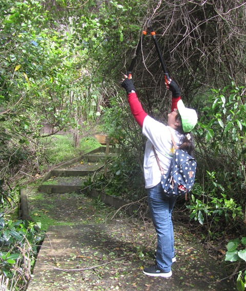 Sweta started at the top of the walking track and worked down using loppers to clear the track.