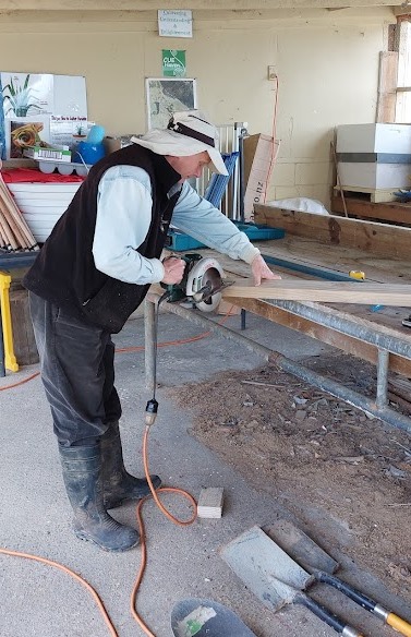 Thomas measured and cut the timber planks to size and the team built a new frame out of treated timber.