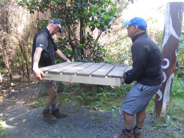The original CUE Haven walking track followed the stream and several years ago we had installed a bench at the junction of the Riroriro and Titoki tracks. The bench had been cemented into the ground and subsequently when the Taraire track was built, it joined the old tracks next to the bench. Since then we have found that the space is a great spot to have students assemble for waicare and other activities. However, the immovable bench meant we couldn’t be flexible in how we used the space.