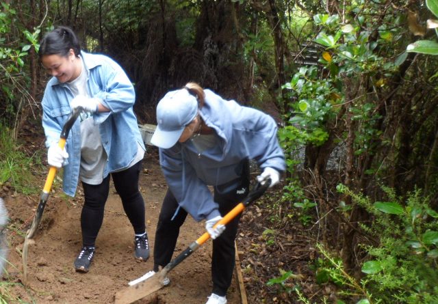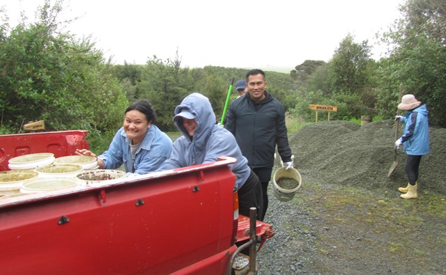 The team included Amelia, Amena, Anna, Helen, Jennifer, Keely, Margaux, Olivia, Roy, Sakina, Tasia and Yorn. Also joining us for the day was our veteran volunteer Luke. Luke works with Spark but was not able to join the Spark team last week, so he kindly offered to spend his volunteer day with us today. Also, Josephine, who drove the Auckland based Nestle staff out in the Bayes Coachlines bus, rolled up her sleeves to help out too!