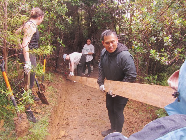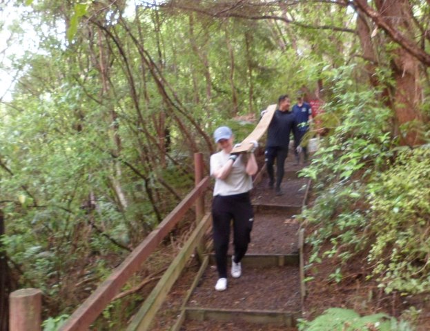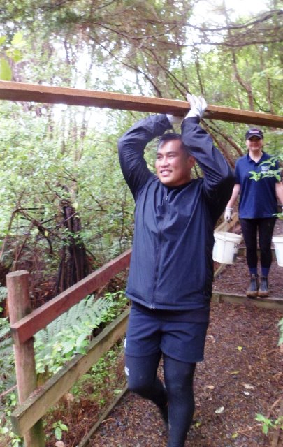 Today a group of Nestle staff spent a wet and drizzly spring day at CUE Haven helping us with some walking track improvements.