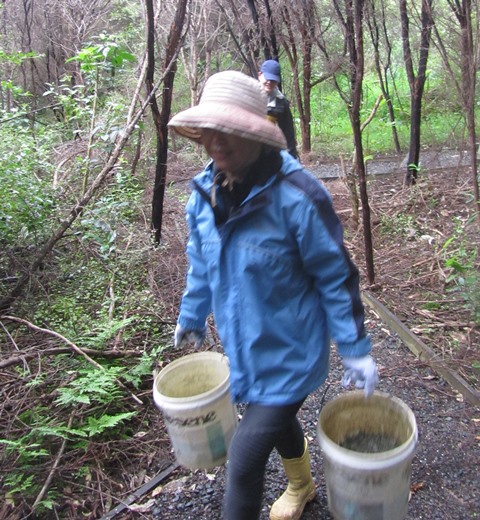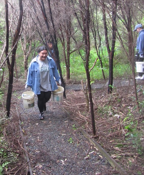 The buckets were loaded onto the ute and driven to the entrance to the walking track.