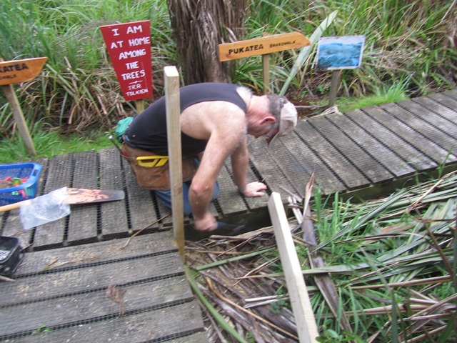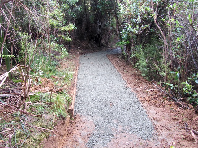 The next job was to put down a layer of gravel on the new walking track section and the platform.