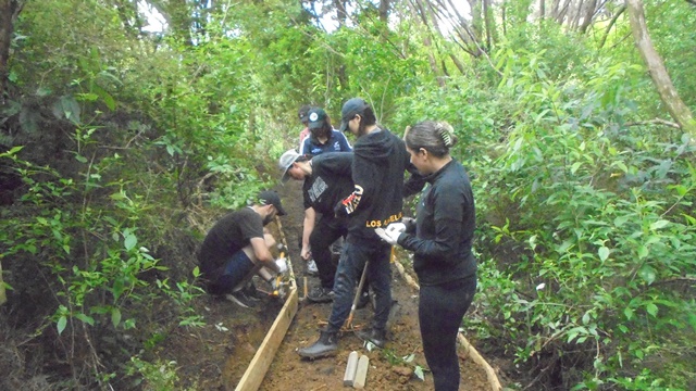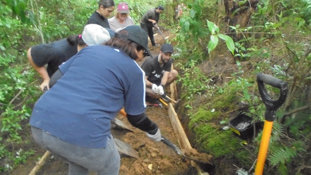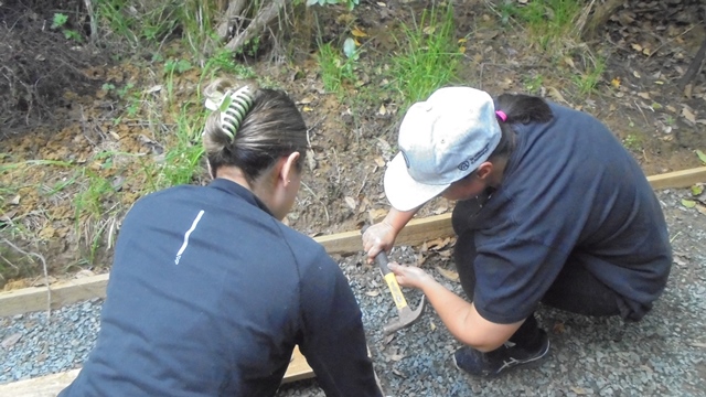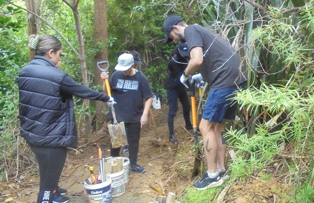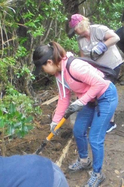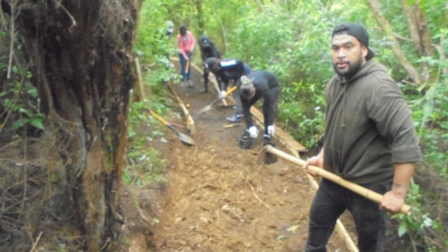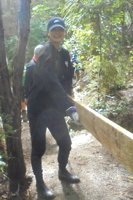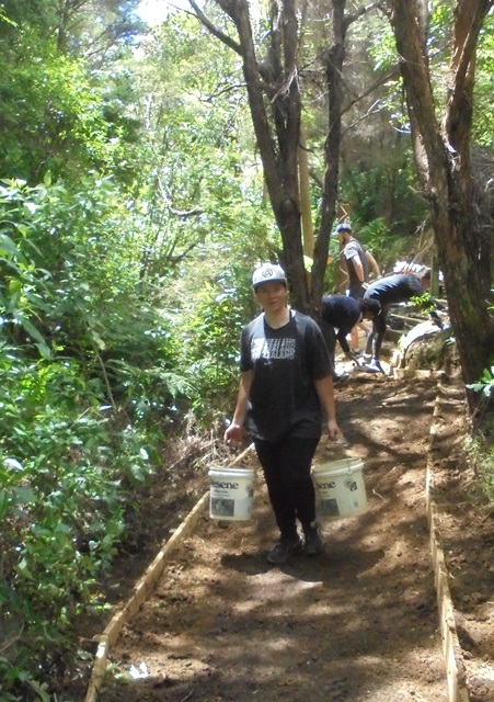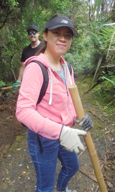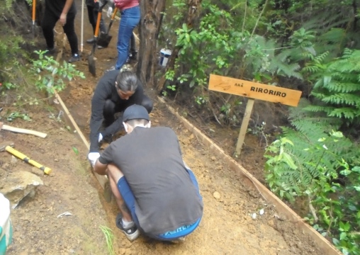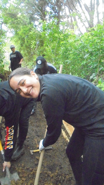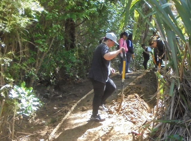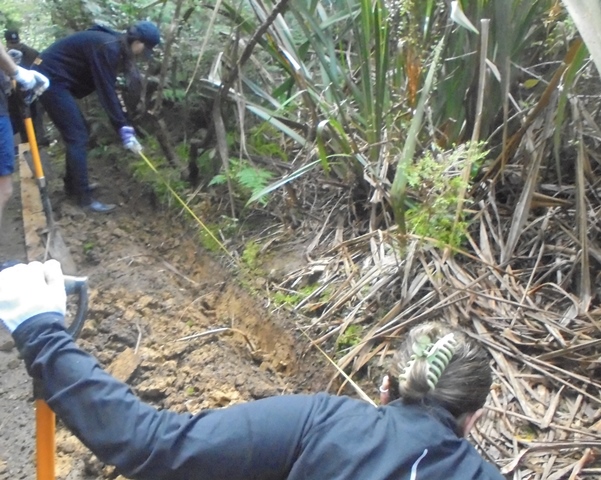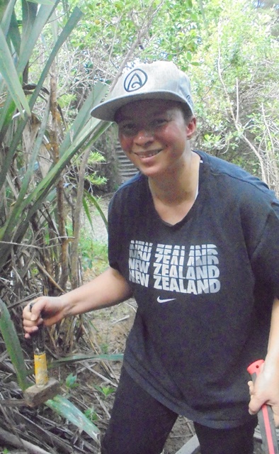 Because of their great teamwork and lots of energy, the team finished off the entire section of track we had planned for the day, making it to the junction with the Taraire track.