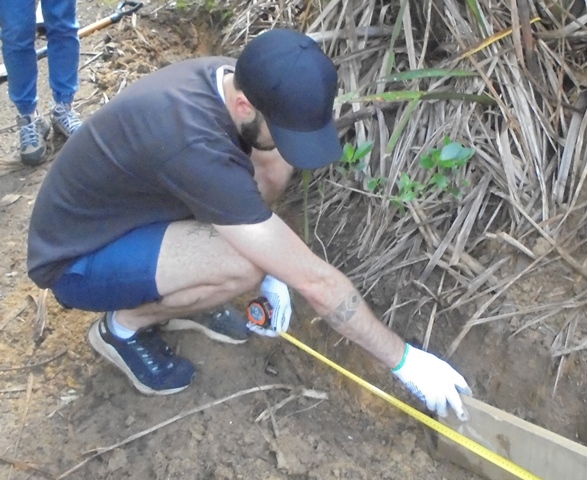 Once the boards were secured, another task was to back fill the channel to keep the boards straight and level.