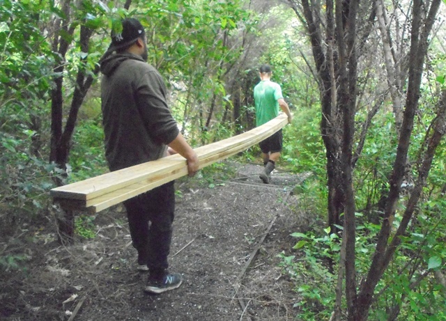 The hard working team used up all the timber and we had to go back to the shed to get more!