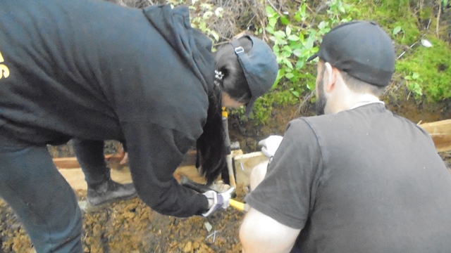 Because of the size of the group, we drove up to the work site in two separate trips. While the first group was heading up, the second group took the initiative to do some weeding by the cottage.