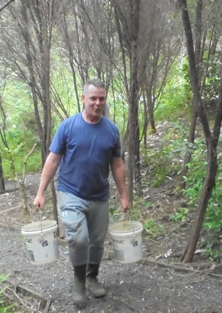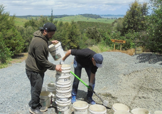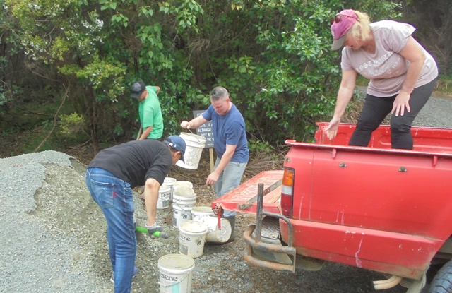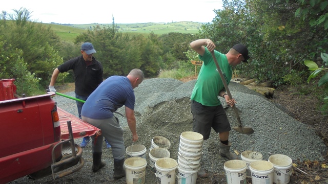 We then drove as close to the site as we could and from there, the buckets were carried to the track where they were dumped and the gravel raked in.