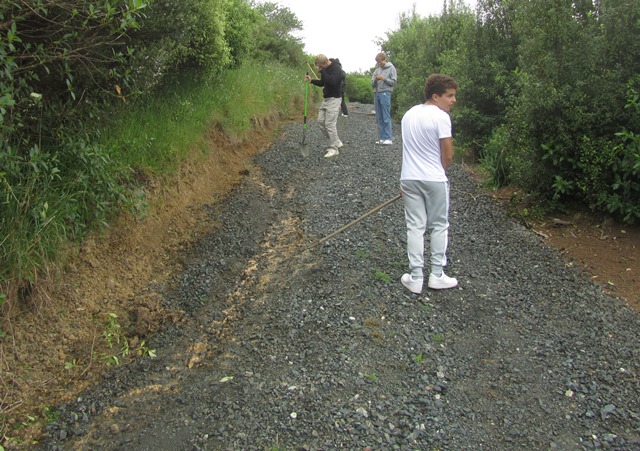 The other team worked on fixing some washouts on the main race. Some of the drains and culverts were blocked during the heavy rain and as a result water flowed onto the road surface and cut channels in the metal.
