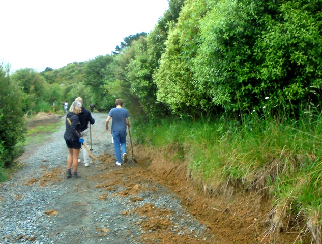 The other team worked on fixing some washouts on the main race. Some of the drains and culverts were blocked during the heavy rain and as a result water flowed onto the road surface and cut channels in the metal.