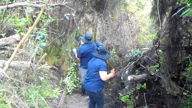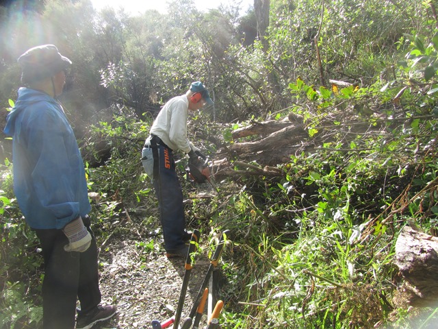 We carried on to the walking track, bringing the loppers and saws and tools in buckets.
